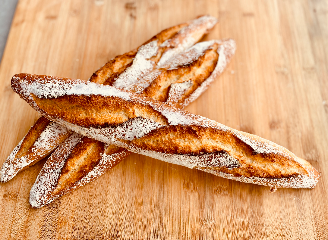 Baguettes × Please scan your personal QR code to unlock this recipe – it is given during the course. Need support Scan QR Code 1h30 Easy 25 min Ingredients for 1 2 3 4 5 6 7 8 125g Plain flour VIEW 2.5g Yeast VIEW 2.2g Salt VIEW 130g Water ➦ Share Step by step